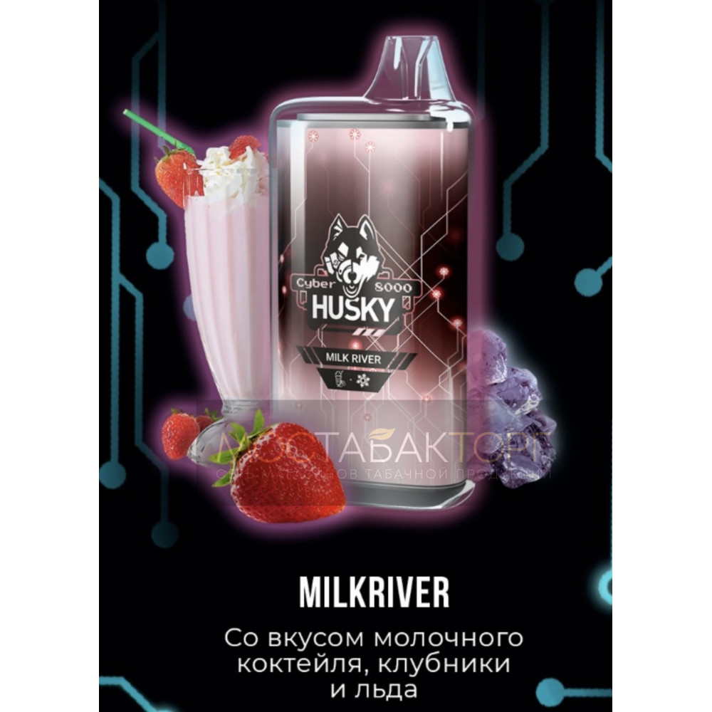 Электронная сигарета Husky Cyber MILK RIVER (Хаски Кибер Клубничный молочный коктейль) на 8000 затяжек