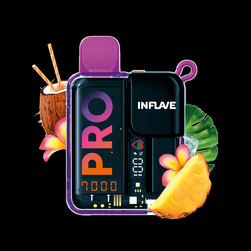 Электронная сигарета Inflave Pro 7000 затяжек Гавайская Свежесть. Экзотика в чистом виде для полного погружения в атмосферу релаксирующего солнечного отдыха. Топ-сочетание свежевыжатого, ананасового, кисло-сладкого сока и освежающих лепестков мяты.