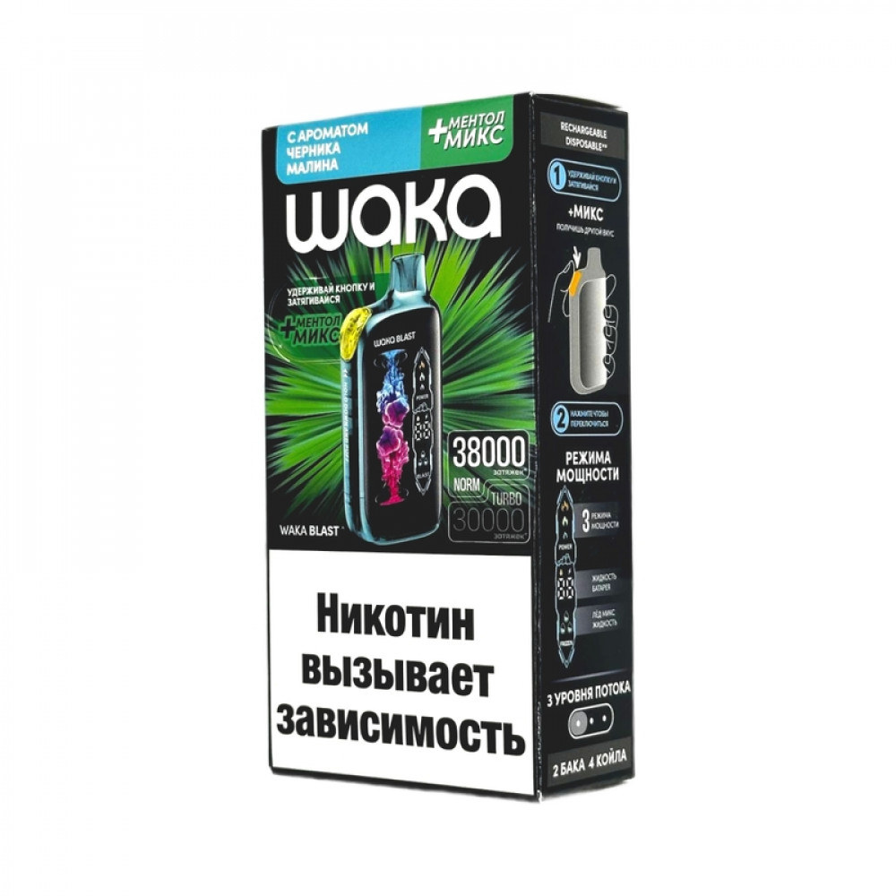 • WAKA BLAST 38000 Hard - Черника малина + ментол микс